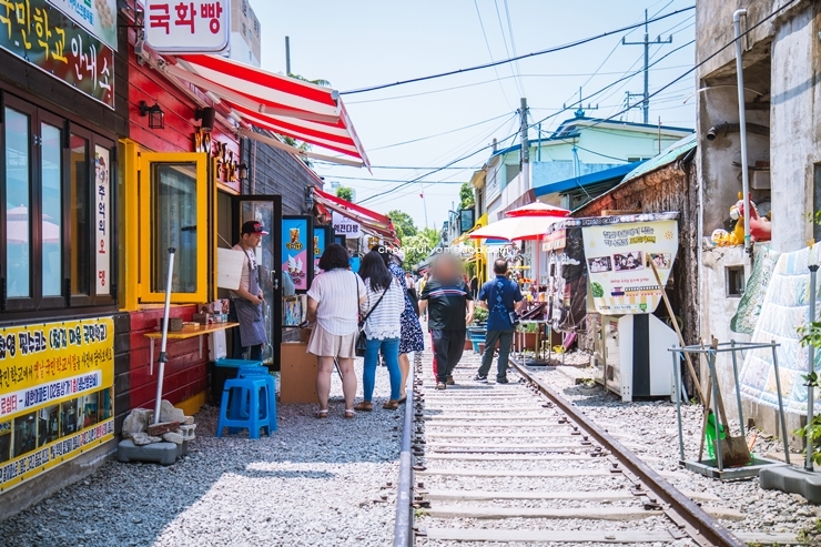 철길 옆으로는 소소한 먹거리를 파는 노점들이 있어 간단히 간식을 즐길 수도 있었습니다. 마을 주민들도 친절하게 맞아주어 따뜻한 인상을 받았던 군산 가볼만한곳 베스트10입니다.