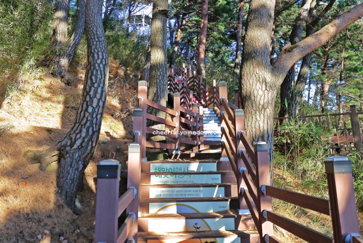 산책로는 해안선을 따라 이어져 있어 바다의 파도 소리를 들으며 걷기에 좋습니다. 산책로 중간에는 죽도암이라는 작은 사찰이 있어 잠시 들러볼 수 있습니다. 죽도암을 지나면 본격적인 오르막길이 시작되며, 계단을 따라 올라가면 죽도정에 도달할 수 있습니다.
