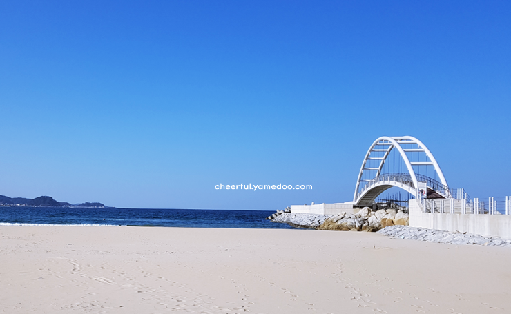 또한, 해변 인근에는 죽도정 전망대가 있어 죽도와 인구해변을 한눈에 바라볼 수 있는 멋진 경치를 감상할 수 있습니다. 죽도정까지는 도보로 약 10분 정도 소요되며, 정상에서 바라보는 바다와 하늘의 조화가 인상적이었습니다.