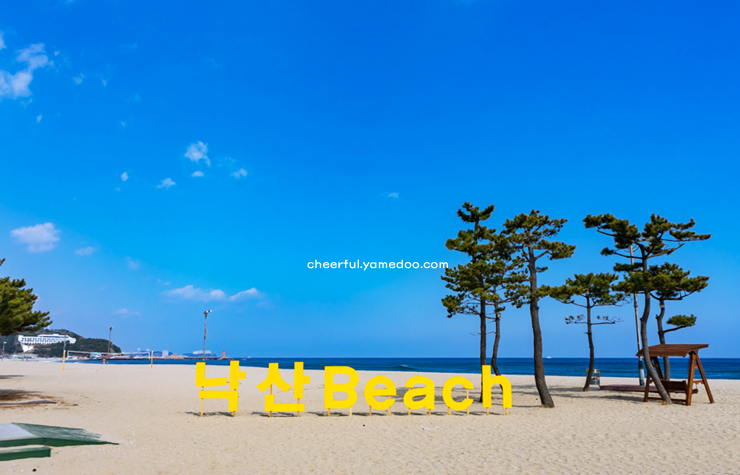 근처에 자리한 소나무 숲은 그늘을 만들어줘 뜨거운 햇살을 피해 쉬기에 좋았고, 숲 사이로 불어오는 바람이 시원하게 느껴졌습니다. 해변 주변에는 간단히 요기를 할 수 있는 음식점과 매점들이 있어 편리했습니다. 특히, 해변 끝자락에 위치한 낙산사의 고즈넉한 풍경이 바다와 어우러져 신비로운 느낌을 더해주었습니다.