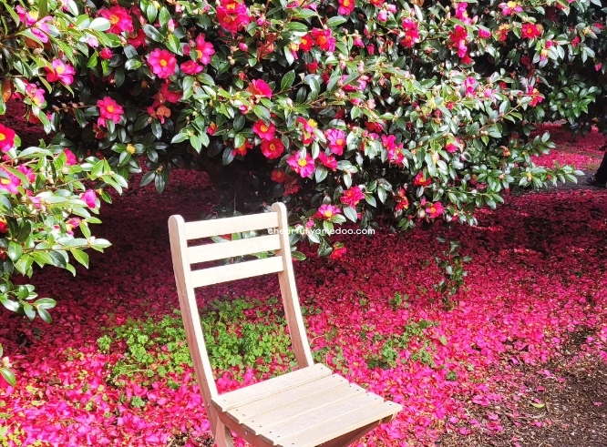 산책로를 따라 걷다 보니 돌담과 어우러진 동백꽃들이 마치 한 폭의 그림처럼 아름다웠습니다. 중간중간 벤치가 있어 잠시 쉬어가며 풍경을 감상하기에도 좋았습니다.
