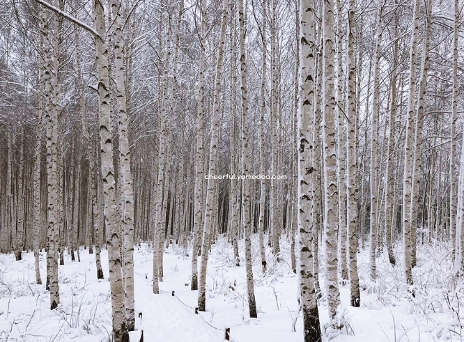 겨울철에는 눈과 얼음으로 길이 미끄러울 수 있으니 등산화와 아이젠, 스틱 등 안전장비를 필수로 착용해야 합니다. 숲에 들어서자 하얀 자작나무들이 빽빽하게 서 있는 모습이 장관이었고, 곳곳에 마련된 포토존에서 사진을 찍으며 추억을 남길 수 있었습니다.