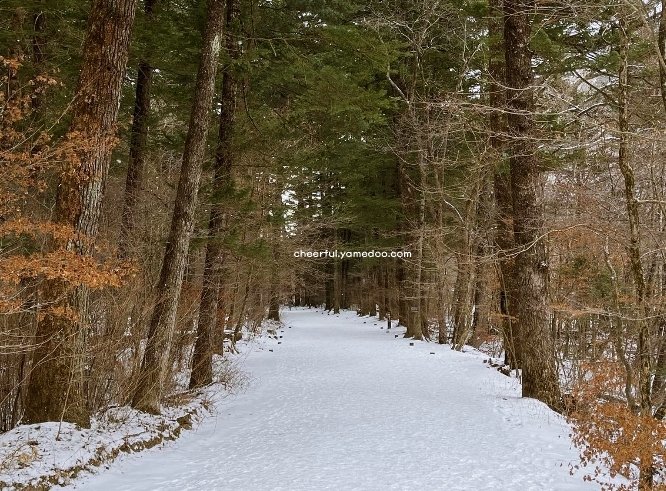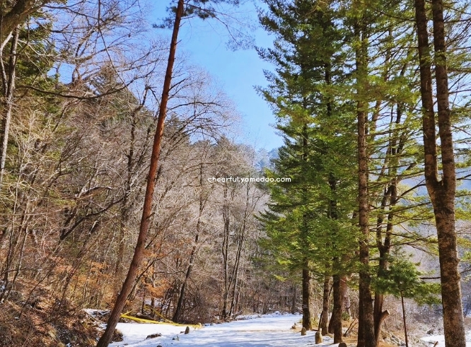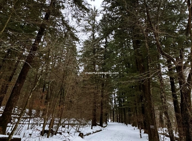 눈이 소복이 쌓인 전나무숲은 마치 동화 속 한 장면처럼 아름다운 겨울 여행지 베스트 10입니다. 전나무 특유의 향기가 은은하게 퍼져 마음이 차분해졌습니다.
