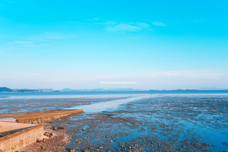 주변에는 작은 갯벌도 있어, 간조 때면 자연이 만들어낸 독특한 풍경을 관찰할 수 있습니다. 해변 근처에는 간단한 간식을 즐길 수 있는 작은 가게들이 있어 방문객들에게 소소한 즐거움을 더해줍니다.