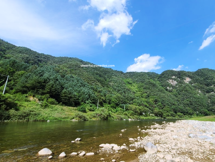 강변에는 평평한 바위들이 많아 피크닉을 즐기거나 간단히 쉴 수 있는 공간도 마련되어 있었습니다. 가을에는 단풍이 물든 산과 강이 어우러져 더욱 아름다운 풍경을 자랑하며, 카메라를 손에서 놓을 수 없을 만큼 멋진 장면이 많았습니다.
