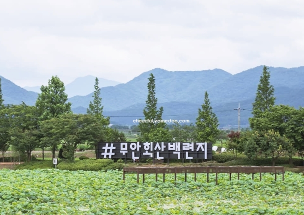 끝없이 펼쳐진 연잎들이 바람에 살랑이며 반짝이고 있었던 무안 가볼만한곳 베스트10입니다. 초록빛 가득한 연잎 사이로 하얀 백련이 고개를 내밀고 있어 한층 더 운치 있는 분위기가 느껴졌습니다. 데크길을 따라 걷다 보니 연못 위를 가로지르는 다리가 나와 가까이에서 연꽃을 감상할 수 있었습니다.