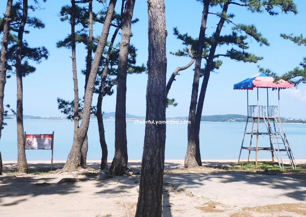 바람이 불어올 때마다 해변 옆 소나무 숲에서 솔향이 은은하게 퍼져 기분이 더욱 상쾌해졌습니다.