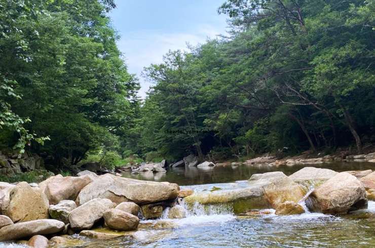 준비해 간 돗자리를 깔고 앉아 흐르는 물소리를 배경 삼아 도시의 기억들을 하나씩 흘려보냈습니다. 햇살이 잎사귀 사이로 떨어질 때마다 물 위가 반짝이며 끊임없이 다른 풍경을 만들었습니다. 계곡을 따라 조금 더 걸어 올라가니, 사람 소리보다 자연의 소리가 더 크게 들렸습니다.