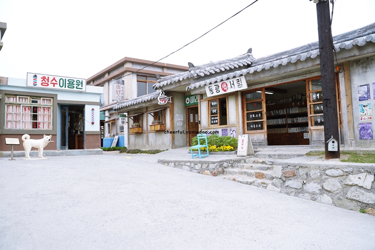 옛날 교복을 입고 사진을 찍는 체험 공간에는 아이들 웃음소리가 퍼져 있었습니다. 건물 사이로 난 계단을 오르니 마을 전체가 내려다보였고, 그 뒤로는 바다가 넓게 펼쳐져 있었습니다.