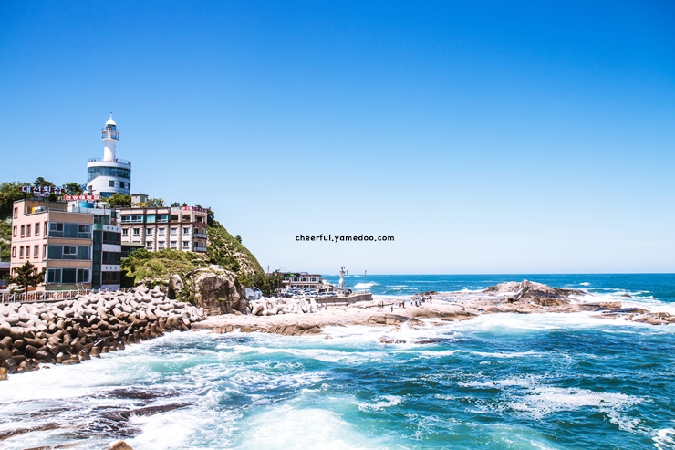 주변에 있던 사람들도 조용했고, 누구도 풍경을 방해하지 않았습니다. 멀리 등대가 보였고, 파란 하늘과 맞닿은 모습이 인상적이었습니다.
