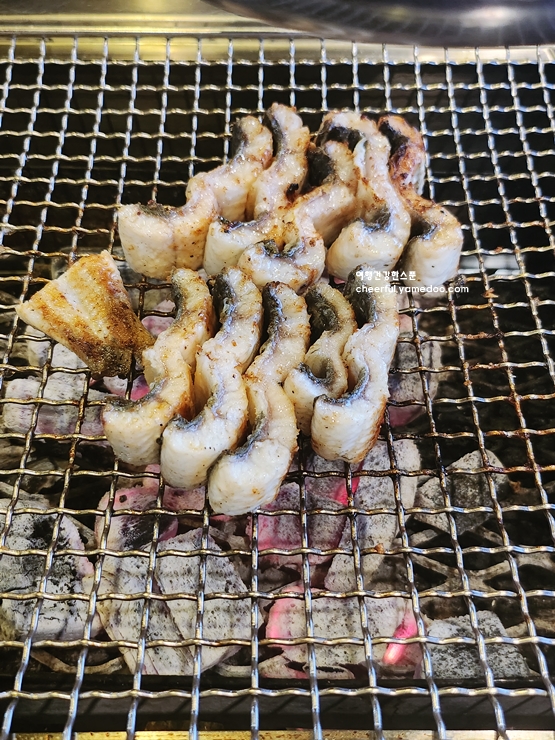 드디어 참숯 위에 장어가 올라갔습니다. 초벌구이된 장어가 숯불 위에서 지글지글 익어가는 모습은 보기만 해도 입맛을 돋우기에 충분했습니다.