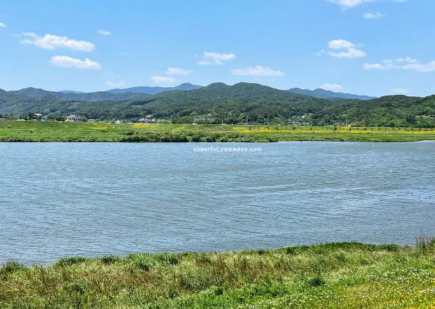 물막이 둑 위로 걷다 보면 강물은 유리처럼 반짝였고, 양쪽 산 능선이 흐릿하게 비춰졌습니다. 전망 데크에 올라서니 물길 따라 자전거 타는 분들이 여유롭게 지나가고 있었고, 그 풍경을 한참이나 바라보게 됐습니다.