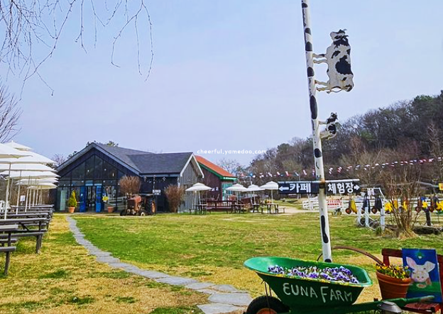 은아목장은 여주 시내에서 차로 20분 정도 걸렸고, 주변이 논밭이라 도착하기 전부터 한적한 분위기가 느껴진 여주 가볼만한곳 베스트10이었습니다. 입장료는 1인당 7,000원이었고, 매표소 옆에서 건초도 별도로 구매할 수 있었습니다.