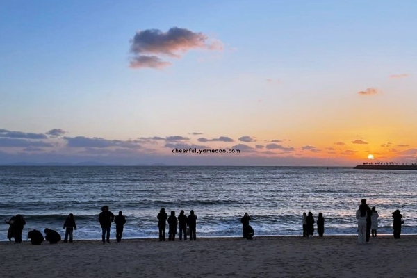해수욕장 한편에는 텐트를 설치하고 캠핑을 즐기는 사람들이 있어, 여유로운 분위기를 자아냈습니다. 일몰 시간에는 붉게 물든 하늘과 바다가 어우러져 환상적인 풍경을 감상할 수 있었습니다.