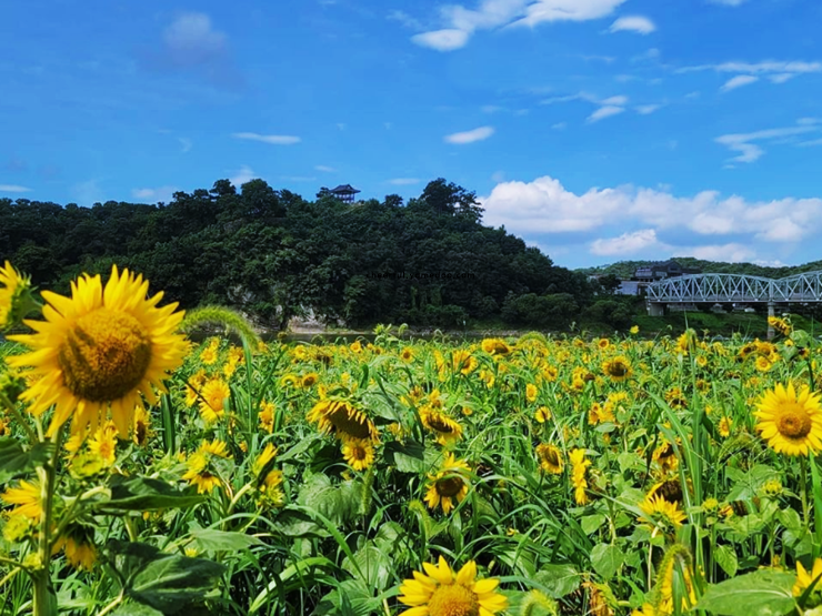 걷는 동안 강물이 옆을 따라 흐르고 있어 시야가 답답할 틈이 없었습니다. 꽃길 중간중간엔 나무 그늘이 드리워져 잠시 쉬기에도 좋았습니다. 아이들과 함께 온 가족, 손을 잡고 걷는 어르신들, 혼자서 풍경을 담는 사람까지 모두 제 속도로 걸어가고 있었습니다. 해바라기 꽃이 아름다웠던 여행장소 입니다.