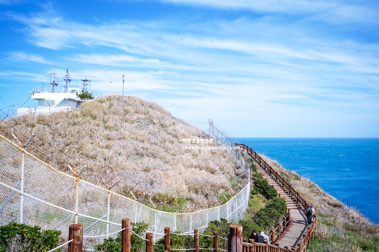 조금 더 걸으니 시야가 탁 트인 해안선을 따라 걷는 길이 나왔습니다. 바람은 제법 강하게 불었지만, 그 바람마저 여행의 일부처럼 느껴졌습니다. 절벽 위에서 내려다보는 바다는 깊고 푸른색을 띠며, 잔잔하게 찰랑이는 물결이 마음을 평온하게 만들었죠. 이런 풍경을 감상하며 걷는 둘레길은 상쾌한 공기와 함께 모든 스트레스를 씻어내는 듯했습니다.