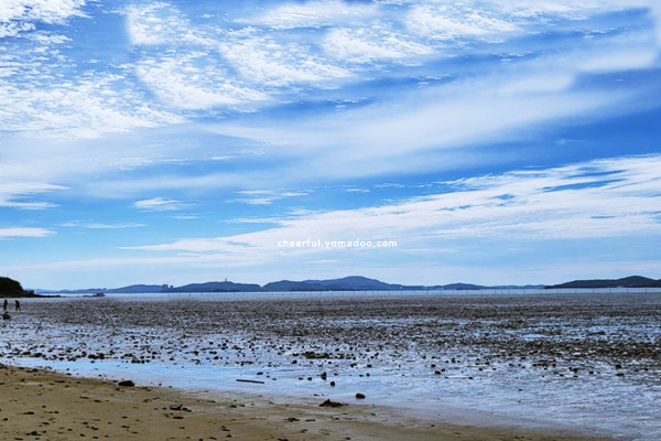 동막해변에 도착하니 넓게 펼쳐진 갯벌과 수평선이 시야를 가득 채웠습니다. 바닷바람은 얼굴을 스치며 적당히 짭조름했고, 마음까지 시원해졌습니다. 썰물 시간에 맞춰 갯벌로 내려가니 발끝에 전해지는 촉감이 오히려 반가웠습니다.