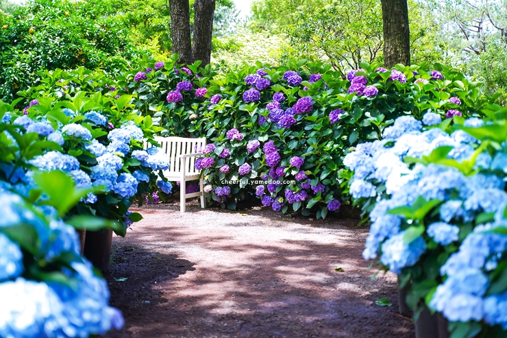 좁은 꽃길을 따라 천천히 걸으면, 수국의 향기와 바람이 어깨 위를 살며시 스쳐 지나갑니다. 길모퉁이를 돌 때마다 펼쳐지는 수국 풍경은 그저 걷기만 해도 힐링이 되었습니다.