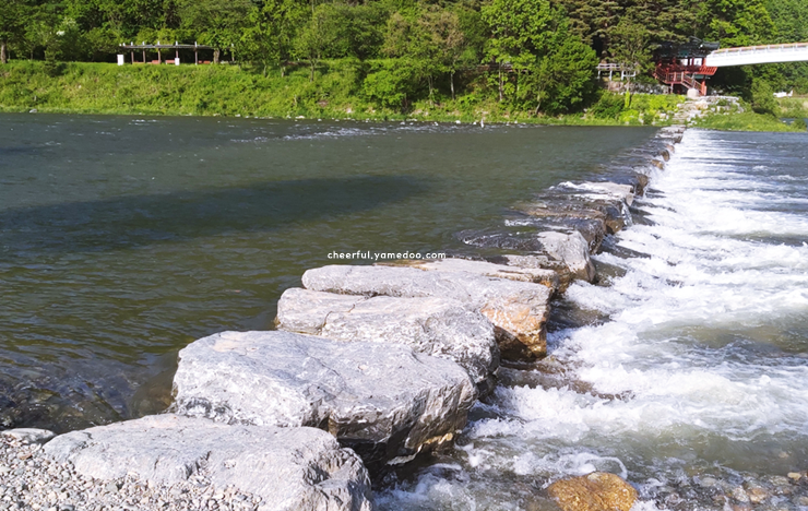 나룻배 모양의 전망대에 올라서니 사방으로 펼쳐진 초록빛 풍경이 마음을 차분히 가라앉혀주었습니다. 강 너머로 보이는 나무와 돌무더기, 그리고 하늘이 어우러져 한 폭의 수묵화 같은 풍경이 되었습니다.