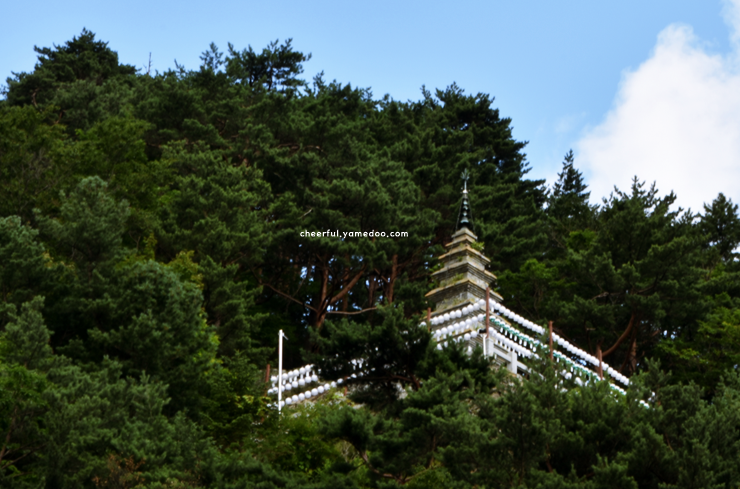 스님의 발걸음마저 조심스럽게 들려와 이곳이 얼마나 조용한지 새삼 실감할 수 있었습니다. 계단을 따라 올라간 뒤돌아본 풍경은, 정선의 산세가 품처럼 펼쳐져 있어 절로 숨이 깊어졌습니다. 탑 옆에 핀 들꽃 한 송이에도 불성이 깃든 듯 고요한 기운이 감돌았습니다.