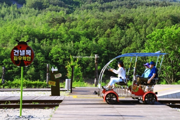 정선레일바이크에 올라 페달을 밟기 시작하자 철길 위로 바람이 부드럽게 흐르며 출발을 알렸습니다. 옆으로는 산과 강이 나란히 달리며 마치 여행길 친구처럼 함께 해주는 느낌이 들었던 정선 가볼만한곳 베스트10 이었습니다.