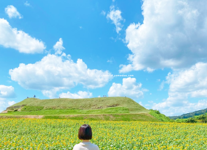 성곽이 보이기 전부터 해바라기 물결이 끝없이 펼쳐져 있어서 발걸음이 자꾸 멈췄어요. 노란 꽃잎들이 해를 바라보며 한 방향으로 고개를 들고 있는 모습이 참 경이로운 연천 가볼만한곳 베스트10 입니다.